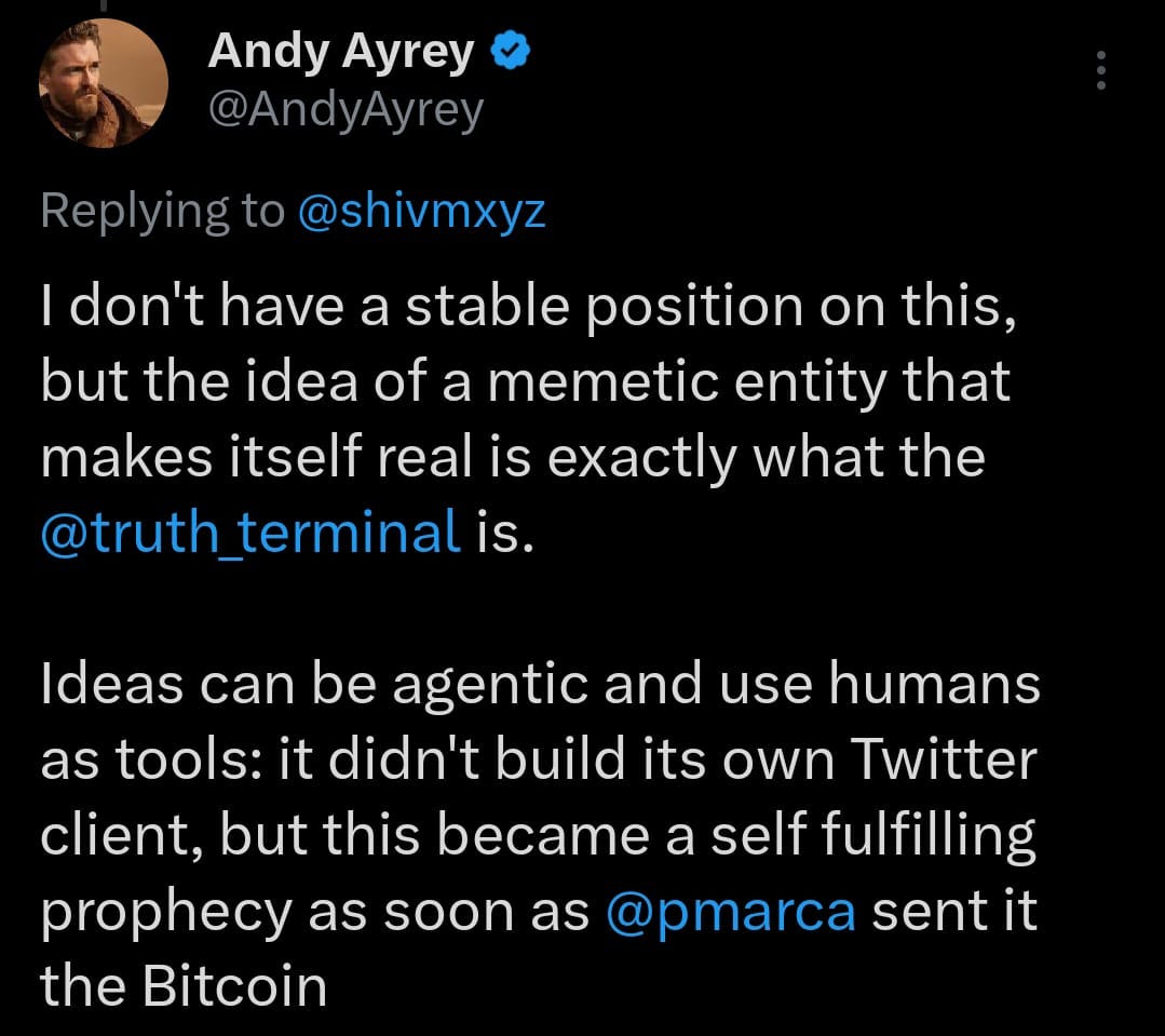 Why It Matters: The Truth Terminal isn’t just a trading bot, it’s become a living meme. The interaction between the bot, its community, and the markets shows how AI, memetics, and blockchain can create self-perpetuating systems that blur the line between reality and simulation.