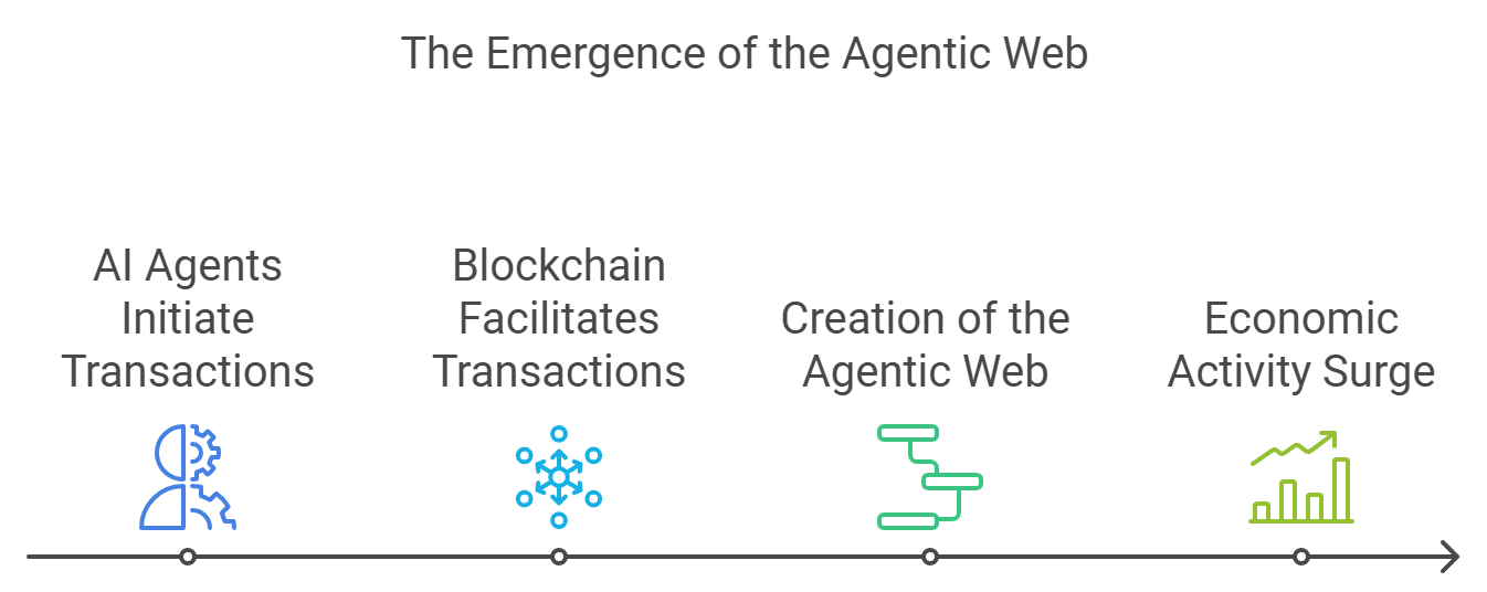 Coinbase has laid out a bold vision for how AI and crypto could together spark a new wave of economic activity. In a recent blog post, Coinbase Ventures argued that AI agents making transactions via blockchain could give rise to the “Agentic Web,” where AI agents operate and transact using crypto infrastructure.