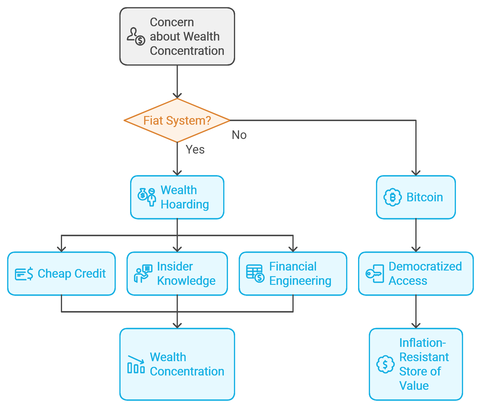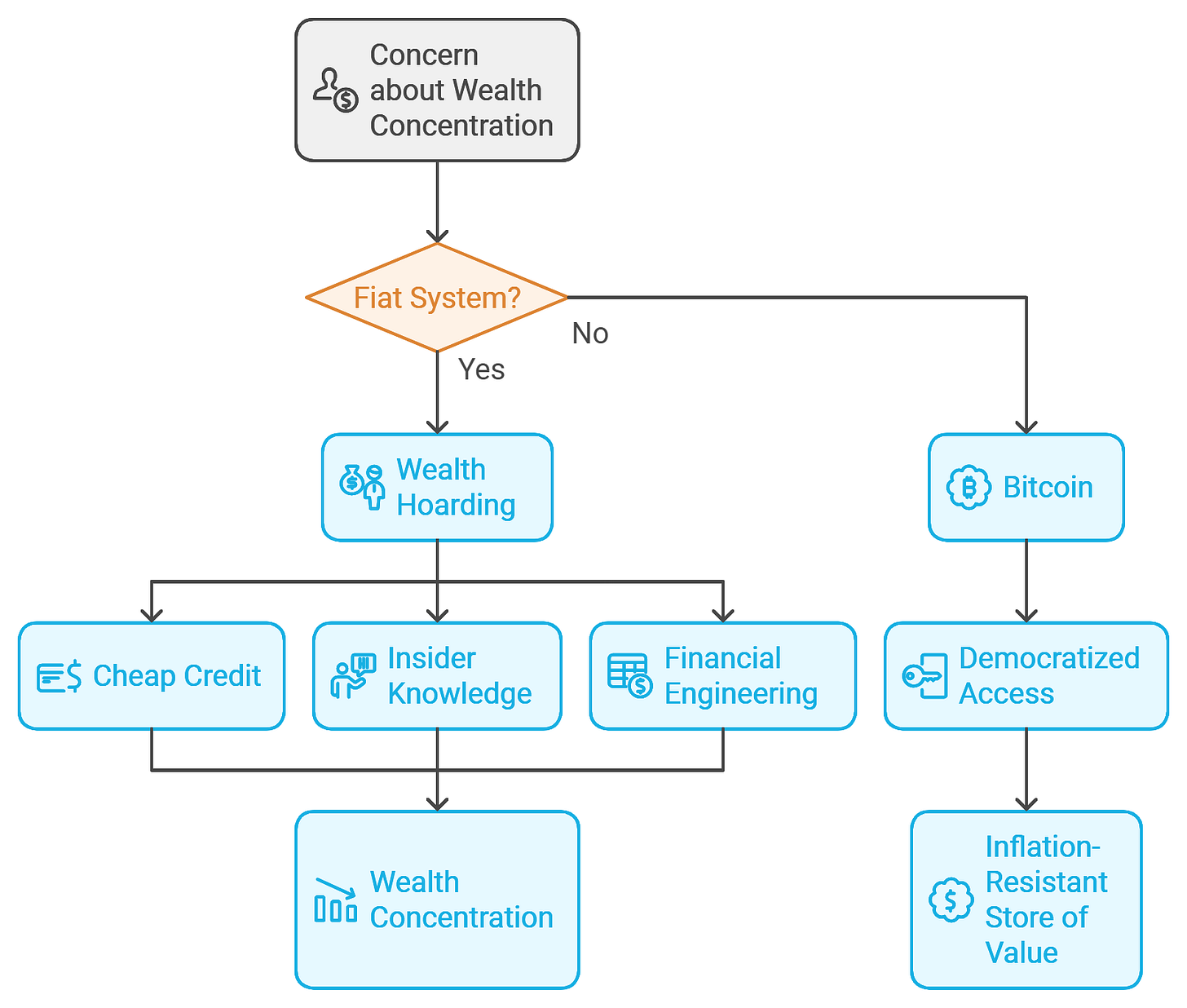 If wealth concentration concerns you, Bitcoin is a solution, not the problem. Fiat systems favor wealth hoarding via cheap credit, insider knowledge, and financial engineering that exclude the average person. Bitcoin democratizes access to an inflation-resistant store of value, without requiring central authority approval.
