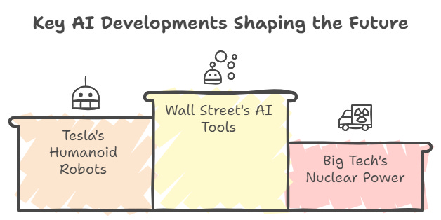 From Wall Street’s internal AI tools to Tesla’s humanoid robots and Big Tech’s nuclear power play, the world of AI is evolving at a rapid pace. As AI adoption grows, so do the challenges and opportunities. Staying ahead means keeping a close eye on these key developments and how they’ll shape the future.